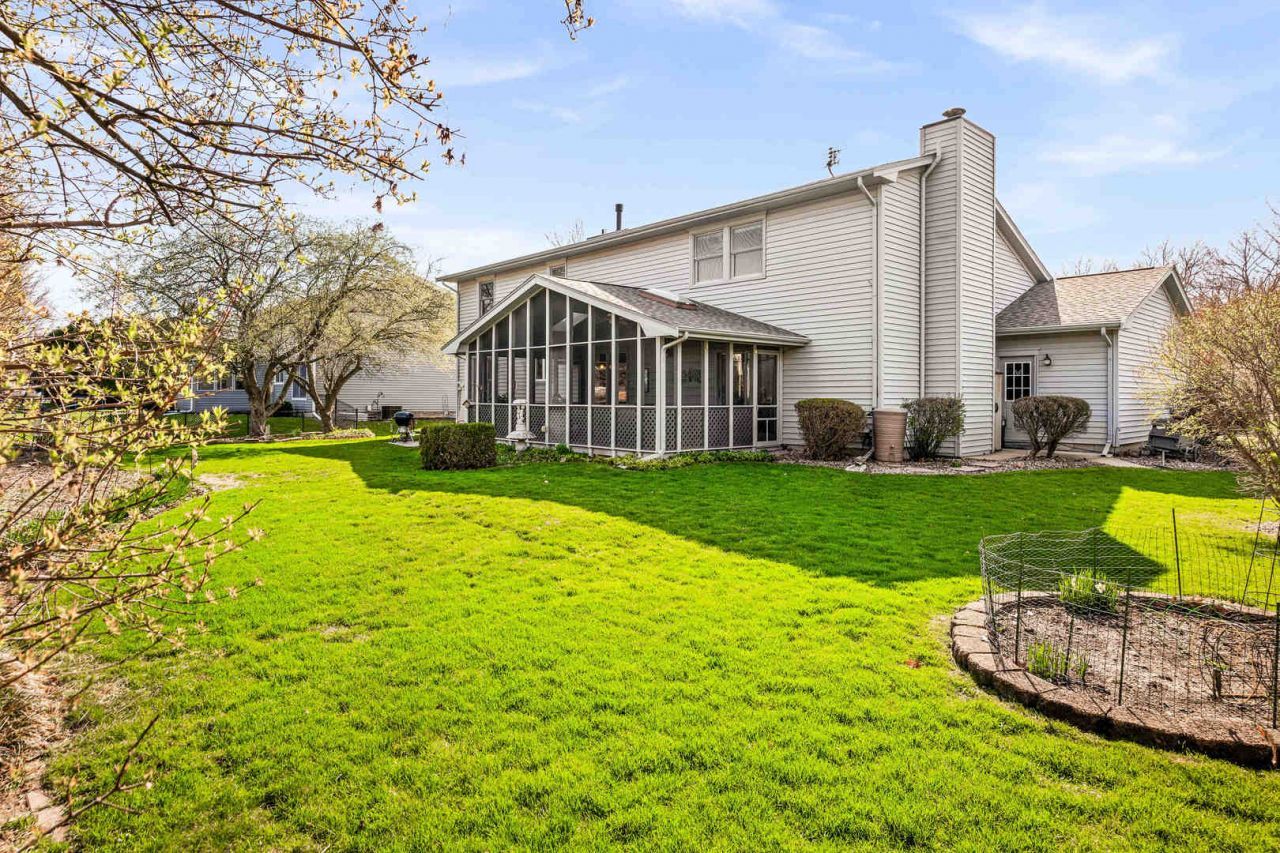 This well-cared for home will be a delight for years to come! It is located in Hedgewood Subdivision with a treed neighborhood park including tennis/pickleball courts, it is close proximity to the Constitution Trail and located within the Unit 5 Northpoint Elementary district. Note the pavers to the inviting front porch and newer front door. Inside is beautiful hardwood flooring in the spacious foyer, living room and dining room. The beautiful updated kitchen features medium toned maple cabinetry thoughtfully designed by Creative Kitchens that provides plenty of perimeter storage and counter space including a large pantry cabinet with roll-out shelves in addition to the warm white island. All the countertops are quartz & all appliances are stainless steel. There is also more storage and a convenient laptop space on the other side of the kitchen dining area. The family room has a fireplace with gas logs for cozy evenings, but this season one will want to head out to the 12x24 screened porch with epoxy floor to greet the morning sun and to enjoy the budding plantings in the backyard & what a way to relax this summer in the shaded porch in the evening! All of the bedrooms upstairs are large. The primary bathroom is roomy with double sinks, extra storage & an updated, easy entrance shower. Also, upstairs is the hall bath & laundry area. If you need more storage head down to the basement to the unfinished area that includes a work sink. There are also two finished rooms that would be suitable for a variety of uses. The 3 car garage features an EV (electric vehicle) outlet. There is a Generac generator that is serviced regularly by Midwest Equipment. Improvements include: 4 year old roof, the water heater is 8 years old & recirculates constantly providing immediate hot water, & newer replaced windows.The yard is beautifullyl andscaped, the property is conveniently located and it is waiting to welcome you home.