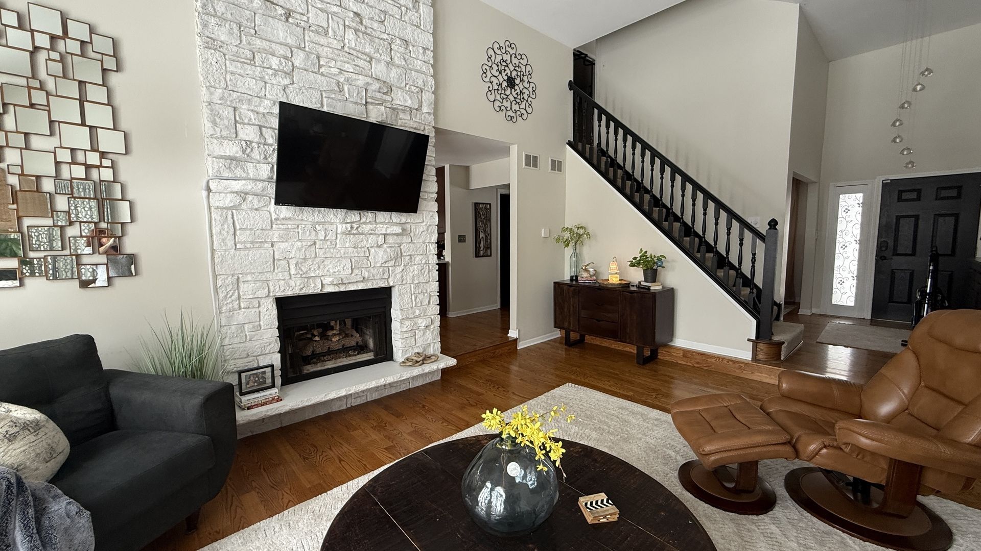 Spacious 5-bedroom, 3.5-bath home set in a quiet, private area near the historic Midlothian Country Club. Surrounded by custom homes, mature trees, and green space, this location gives you privacy without losing convenience. Step into the main level and you'll notice the open feel right away. The main living room features cathedral ceilings, large windows overlooking the backyard, and a double-sided gas fireplace that connects the main living spaces. Wood floors run throughout the main level, giving a clean, updated look. The main-level primary suite is built for comfort, with cathedral ceilings, a walk-in closet, and a private ensuite bath featuring a soaking tub and separate shower. The kitchen includes quartz countertops, pantry space, and easy access to the main-level laundry room. Upstairs, you'll find three additional bedrooms, including one with its own walk-in closet, giving you flexible space for family, guests, or a home office. The walkout basement adds real value. It opens directly to a fully renovated poured patio backyard designed for entertaining. Outside, you'll find a gas hookup for grilling, a hot tub with a privacy surround, and a bar area. Inside the lower level, there's a second full kitchen-ideal for large gatherings or related living-along with a remodeled full bathroom and an additional bedroom with a walk-in closet. The home also includes a Vivint security system with hardware, monitoring capability, doorbell camera, and door sensors already installed. Major updates have already been completed between 2020 and 2024. This home gives you space, updates, and a layout that works for everyday living and hosting.